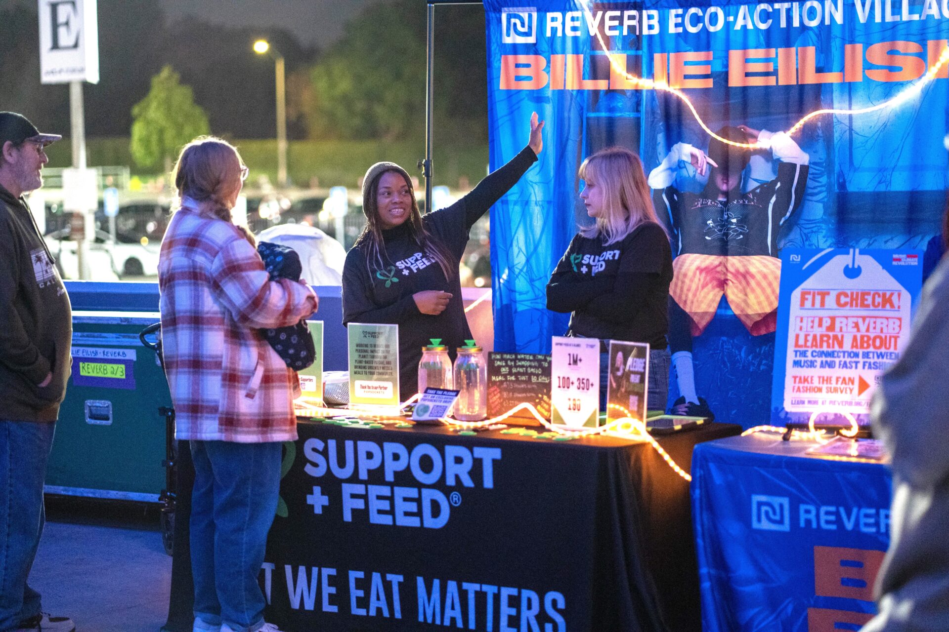 A call to action is promoted via IMAG screens or speakers - fans donate or take action for Support + Feed for a chance to win a nightly prize.